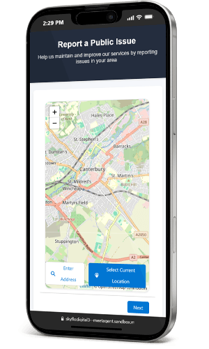 Issues are pinpointed automatically using GPS, what3words, or manual address lookup — ensuring reports arrive with the detail councils need.